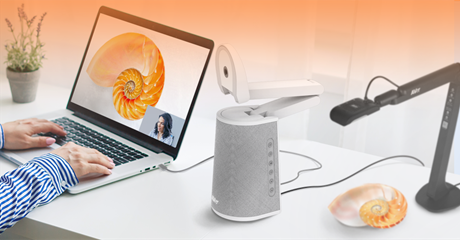 Die A30 ist eine Multifunktions- und Universalkamera. Es ist die erste Ihrer Art mit Visualizer, Mikrofon und Lautsprecher in einem Gerät. Gleichzeitig kann die A30 als Webcam für Videokonferenzen sowie als Dokumentenkamera für die Visualisierung von Gegenständen verwendet werden. Sie bietet das ultimative Erlebnis für hybrides/mobilen Lernen.