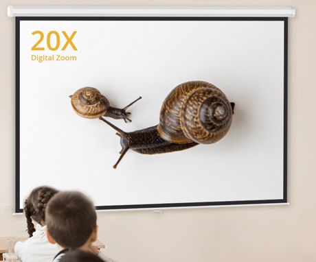 Mit 8 Megapixel und 20-fach Digitalzoom vergrößert die M11-8MV selbst feinste Texturen, und die Schüler erkennen problemlos von jedem Platz aus die kleinsten Details. Nie mehr Schülerpulks, die einander herumschubsen und schieben, um einen bessern Blick zu erhaschen.