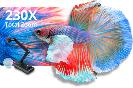Mit dem 10-fach optischen Zoom plus 23-fach Digitalzoom der M70W erfassen Sie jede Aufnahme Nahaufnahmen verbessern das Lernerlebnis weiter, weil Lehrkräfte nun selbst winzigste Details zeigen können.