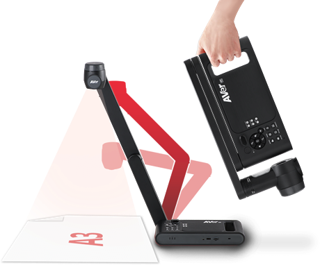 Der stabile, verstellbare mechanische Arm und der Tragegriff ermöglichen den Anwendern die flexible Nutzung der M70W in den unterschiedlichsten Bereichen. Und der Positionsanzeiger im Kamerakopf ermöglicht die präzise Darstellung von Dokumenten im A3-Format.