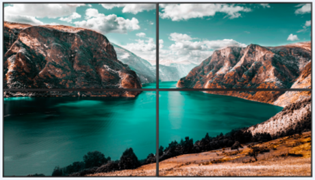 Die Discover 2-Displays verfügen über eine integrierte Tiling-Funktion, mit der Sie einfach und effizient Videowände erstellen können. Die Funktion funktioniert durch das Daisy-Chaining von Verbindungen von einem Bildschirm zum nächsten, ermöglicht durch den mitgelieferten HDMI-Ausgang. Nachdem Sie alle Bildschirme verbunden haben, können Sie im Einstellungsmenü angeben, wo jeder Bildschirm installiert ist - der Bildschirm passt dann das Bild entsprechend an. Mit dem Discover 2 können Sie Videowände bis zu 3x3 Bildschirme ganz ohne zusätzliche Hardware erstellen. Es sollte jedoch beachtet werden, dass hier nur gleichmäßig angeordnete Konfigurationen möglich sind, bei denen das Format der Videowand wiederum ein Seitenverhältnis von 16:9 (vier und neun Displays) aufweist. Wenn Sie unterschiedliche Seitenverhältnisse benötigen, kann dies mithilfe zusätzlicher externer Hardware realisiert werden.