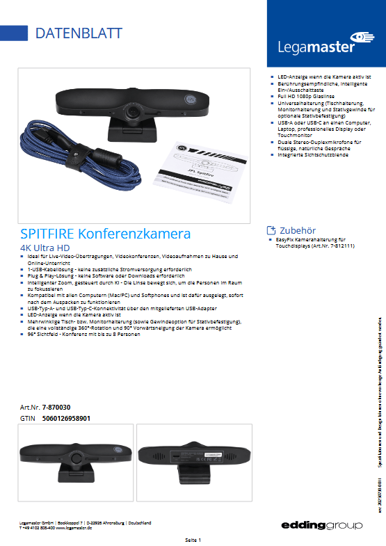 Die Plug-and-Play-Connection gewährleistet eine nahtlose Integration mit Unsere Geräten und macht sie zur idealen Wahl für die Verbesserung von Remote-Meetings.