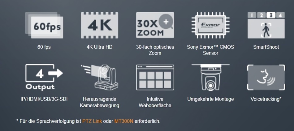 Die AVer PTZ330UV2 ist eine hochmoderne PTZ-Kamera mit 4K 60 fps HDMI-, USB- und IP-Ausgängen. Das 30-fach optische Zoomobjektiv bewegt sich bemerkenswert flüssig, um nahtlose Videoinhalte zu streamen. Die eingebetteten intelligenten Funktionen SmartShoot bietet einzigartige Flexibilität bei allen Aufnahmen, von einem Moderator bis zu unzähligen Teilnehmenden, für eine wirklich vielseitige und professionelle Streaming-Lösung.