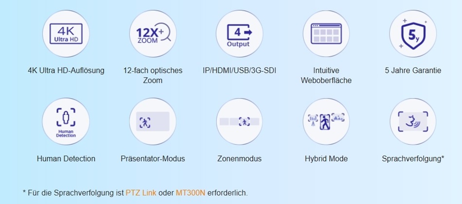 AVers neue TR315 KI Auto Tracking PTZ-Kamera erweitert die leistungsstarken und zuverlässigen Pro AV-Fähigkeiten für Anwender in der gesamten Industrie. Die TR315 beeindruckt mit proprietären Funktionen — einschließlich Tracking im Presenter-Modus, Zonenmodus und Hybridmodus — gestützt auf fortschrittliche KI-Verarbeitung. Die nahtlose Zusammenführung von 12-fach optischer Zoomlinse, 4K 60 fps Auflösung, Feinheit von Hybrid-Auto-Tracking und reibungslosen PTZ-Abläufen ist schon heute die erste Wahl für Senden, Streamen und Aufzeichnen.
