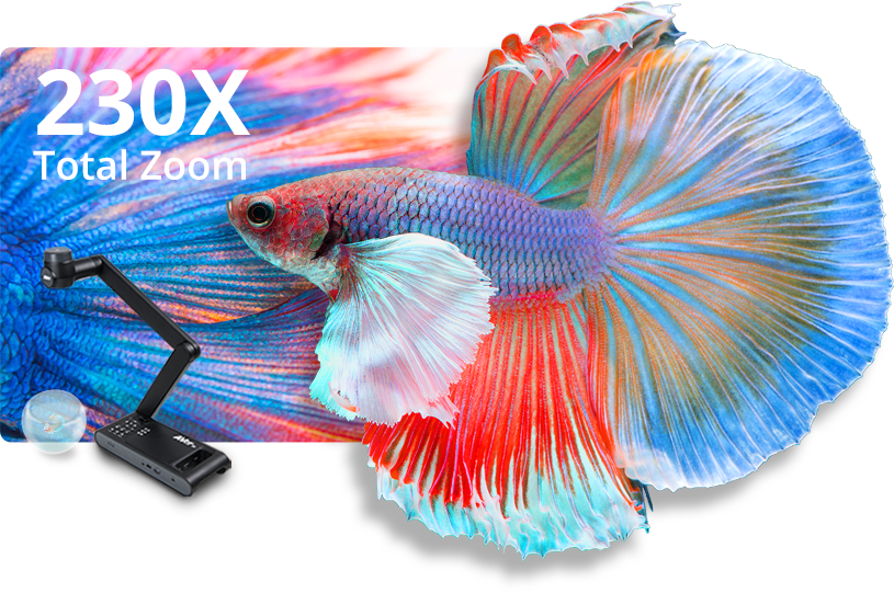 Mit dem 10-fach optischen Zoom plus 23-fach Digitalzoom der M70W erfassen Sie jede Aufnahme Nahaufnahmen verbessern das Lernerlebnis weiter, weil Lehrkräfte nun selbst winzigste Details zeigen können.