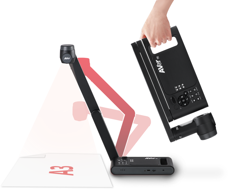 Der stabile, verstellbare mechanische Arm und der Tragegriff ermöglichen den Anwendern die flexible Nutzung der M70W in den unterschiedlichsten Bereichen. Und der Positionsanzeiger im Kamerakopf ermöglicht die präzise Darstellung von Dokumenten im A3-Format.