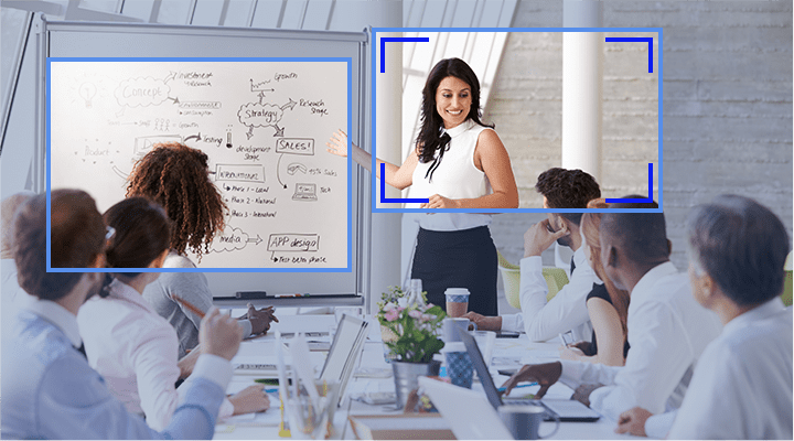 Mit der CAM520 Pro2 und ihrem Preset-Framing-Modus verfolgen Sie Moderatoren ganz einfach in vorab definierten Bereichen. Sie können mehrere Sichtbereiche festlegen, in welchen die Kamera den Moderatoren automatisch folgen wird. Keine Fernbedienung erforderlich!
