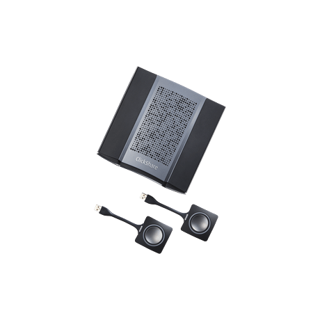 Der CSE-200+ bietet interaktive kollaborative Erfahrungen für mittelgroße Besprechungsräume. Bis zu zwei Personen können Inhalte gleichzeitig teilen. Die Teilnehmer schließen einfach das USB-Gerät – den ClickShare Button – an ihren PC oder Mac an und zeigen ganz unkompliziert per Knopfdruck die Inhalte von ihrem Laptop auf dem großen Bildschirm im Tagungsraum an. Mit den ClickShare-Apps können Benutzer auch Inhalte von ihren Laptops, Smartphones oder Tablets teilen. Vergewissern Sie sich, dass Sie die Firmware-Version 1.7 auf Ihrer Base Unit installiert haben, um das System optimal mit der Desktop-App nutzen zu können.