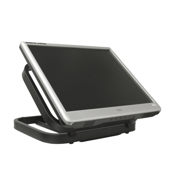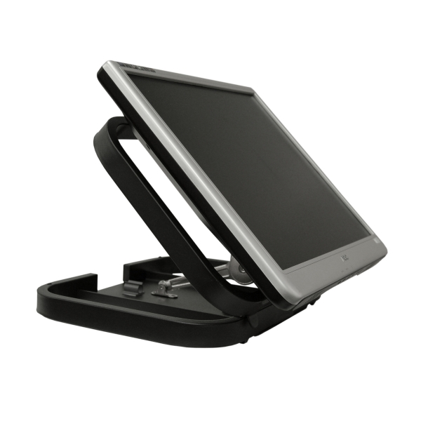Ultrakompakter Tisch-Ständer für LCD/LED Monitore und Touch Screens bis 24". Stufenlos bis 65 Grad in der Neigung einstellbar. Komplett zusammenklappbar.