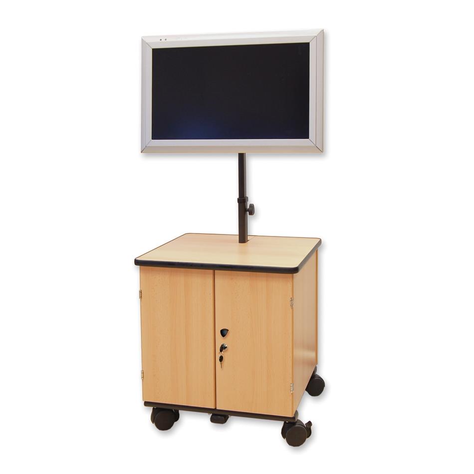 Für 19"-Einbaugeräte geeignet, max. Größe des Displays 32" mit einem max. Gewicht von 25,0 kg, neigbarer Winkel +/-12°, Sichere Befestigung des Displays (VESA Standard 50, 75, 100 und 200/100), 4 Rollen mit 80 mm Durchmesser, 2 Rollen feststellbar, Speziell entwickelt - keine schnelle Demontage möglich, um einen unerwarteten Diebstahl vorzubeugen.