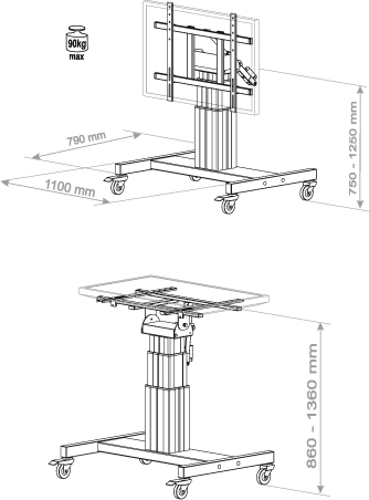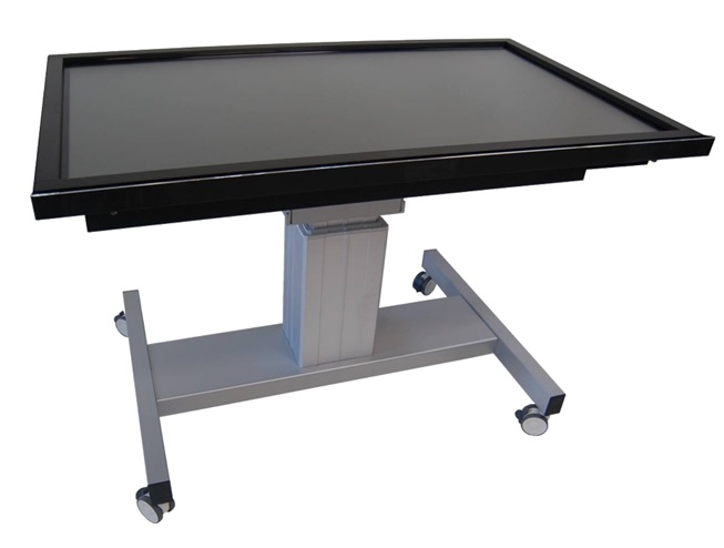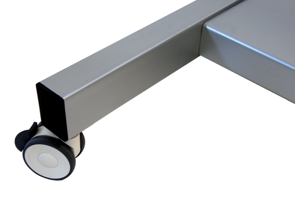 Mit den vier starken Räder, die alle mit Bremsen versehen sind, können Sie das Gerät zwischen verschiedenen Orten zu bewegen. Der Kipptisch ist zur einfachen Bedienung mit einer Kabel-Fernbedienung ausgestattet.