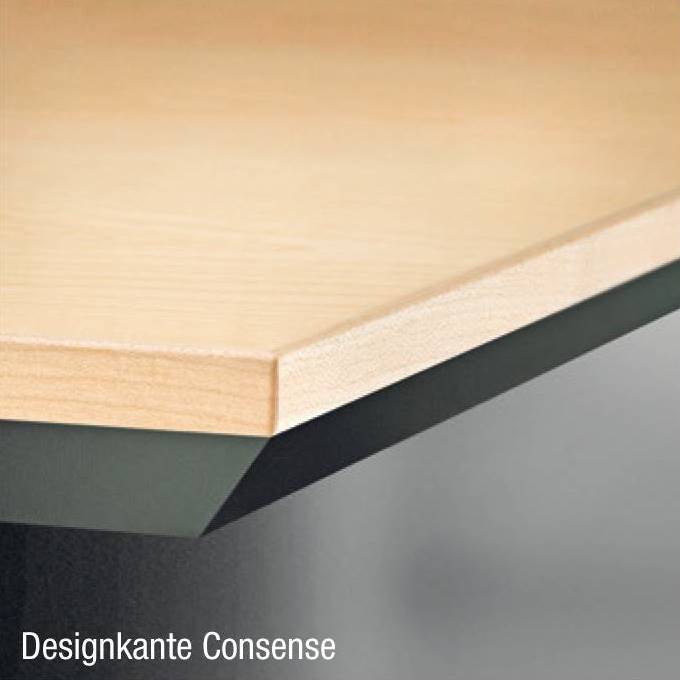 Hochwertige Platte (ca. 39 mm) mit Konferenzkante Consense (45°-Schräge, farbig abgesetzt), mit oder ohne Akzent-Einleger, mit