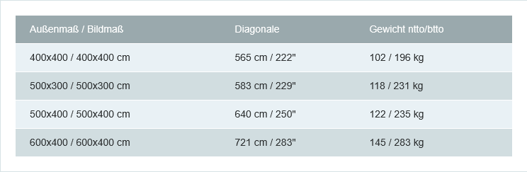 - großformatige Elektro-Leinwände, besonders geeignet für den anspruchsvollen Einsatz im Messe- und Kongreßbereich