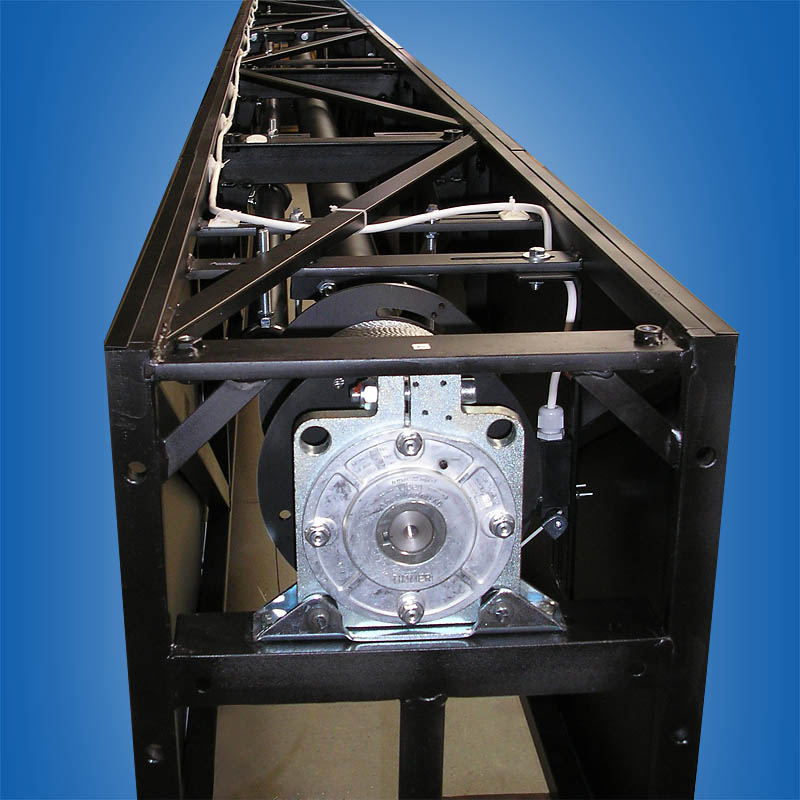 - Roll- System stellt möglichst fläche Projektionstücher für Breiten über 7 m sicher und ist die ideale Wahl für Messehallen, Kongresszentren, Theatern und Kinos