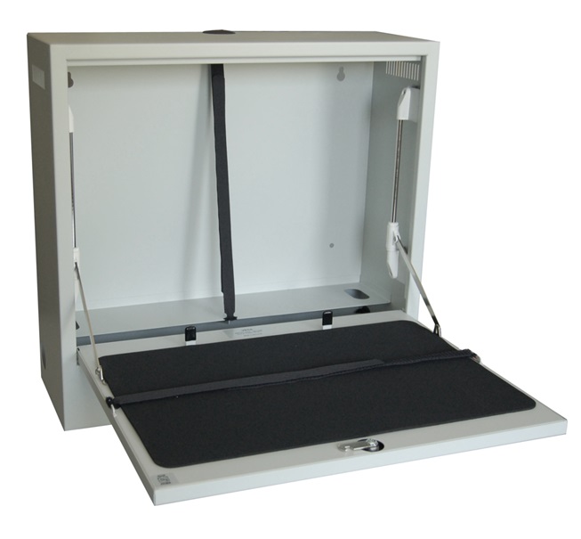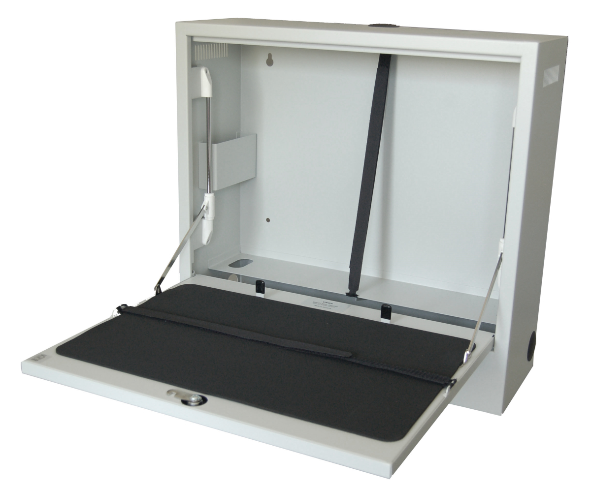 Mini PC-Box - zur Wandmontage geeignet - Aufnahme von Mini PCs aus robustem Stahlblech, pulverbeschichtet Abmessung (H x B x T in mm) 540 x 570 x 200 ausgestattet mit: - 1 kleines Ablagefach - Kabeldurchführungen - Kabelmanagement - Robustes Schloss.