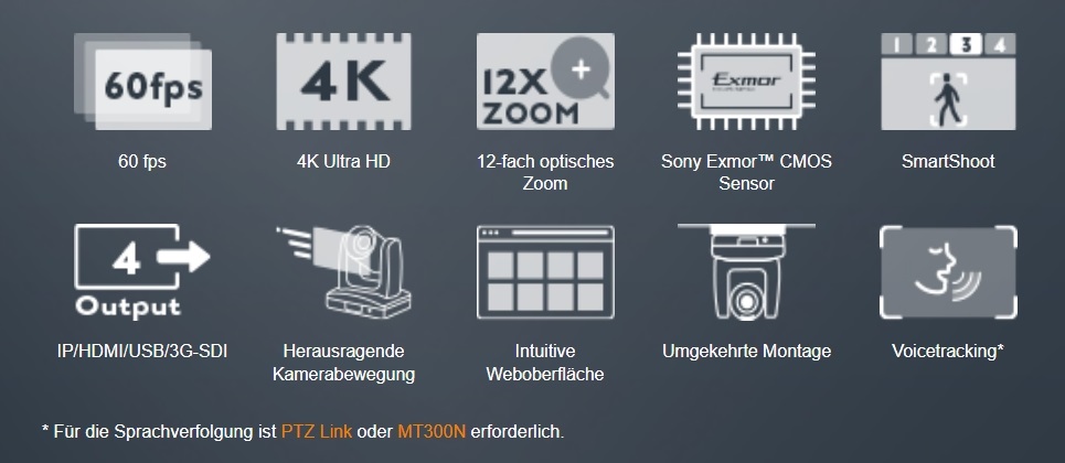 Dank ihrem branchenführenden Sony-Sensor sorgt die 4K Ultra HD-Auflösung der PTZ310UV2 für beeindruckende Klarheit jedes Streams. Dieser hervorragende Bildprozessor ist in der Lage das Video automatisch anzupassen - garantiert großartige Szenen, unabhängig von Situation oder Entfernung.