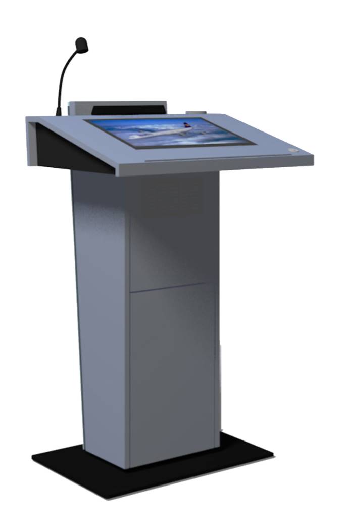 Das Pult ist konzipiert als elektrisch höhenverstellbares Rednerpult mit schlanker Silhouette! Im oberen Korpus können Geräte der AV-Technik nach Wunsch eingebaut werden. Die Front besteht aus einem rückseitig mattierten Glas das wahlweise auch mit einem Siebdrucklogo versehen werden kann! Alternativ kann hinter dem Glas auch ein Bildschirm für wechselnde Logos oder sonstige Informationen eingebaut werden.