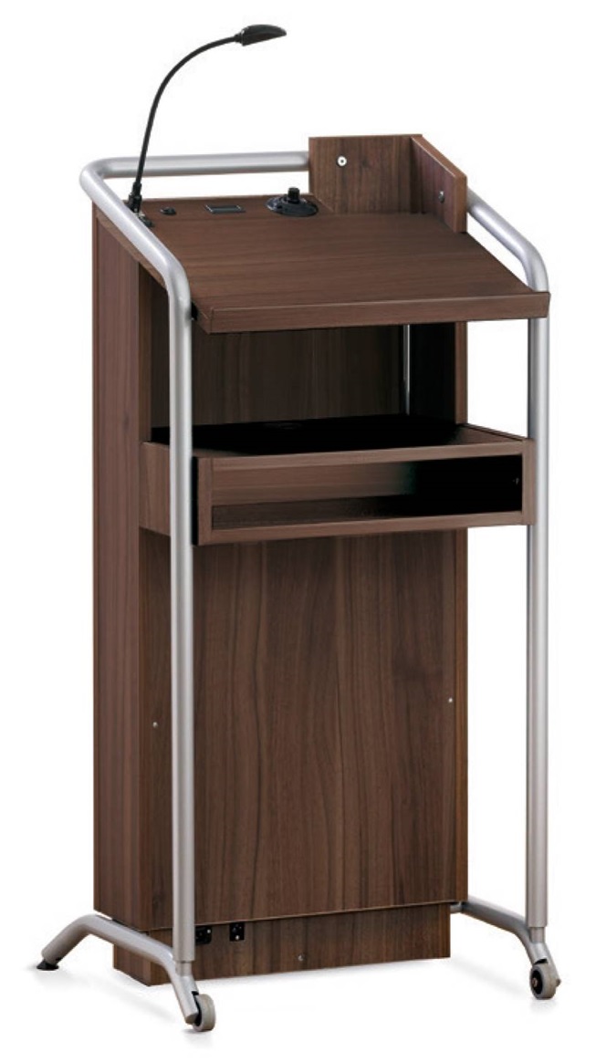 Mit dem Pult gelang es dem Designer ein formvollendetes Rednerpult zu schaffen, dessen durchdachte Funktionalität letztlich jeden Redner begeistert. Das Pult ist in verschiedenen Ausführungen – unter anderem in einer elektrisch höhenverstellbaren Variante – erhältlich.