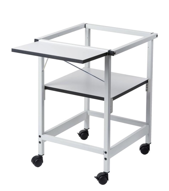Trolley AV 760 - OHP-Wagen (Farbe: lichtgrau) Projektionstisch für Stand-Overhead-Projektoren mit 4-seitigem Fallschutzrahmen, OHP-Auflagenfläche 3-stufig höhenverstellbar (max. bis 72cm), 4 Lauf-rollen (2 feststellbar), Belastbarkeit OHP-Auflagen-fläche: bis max. 25 kg, Gewicht: ca. 13 kg.
